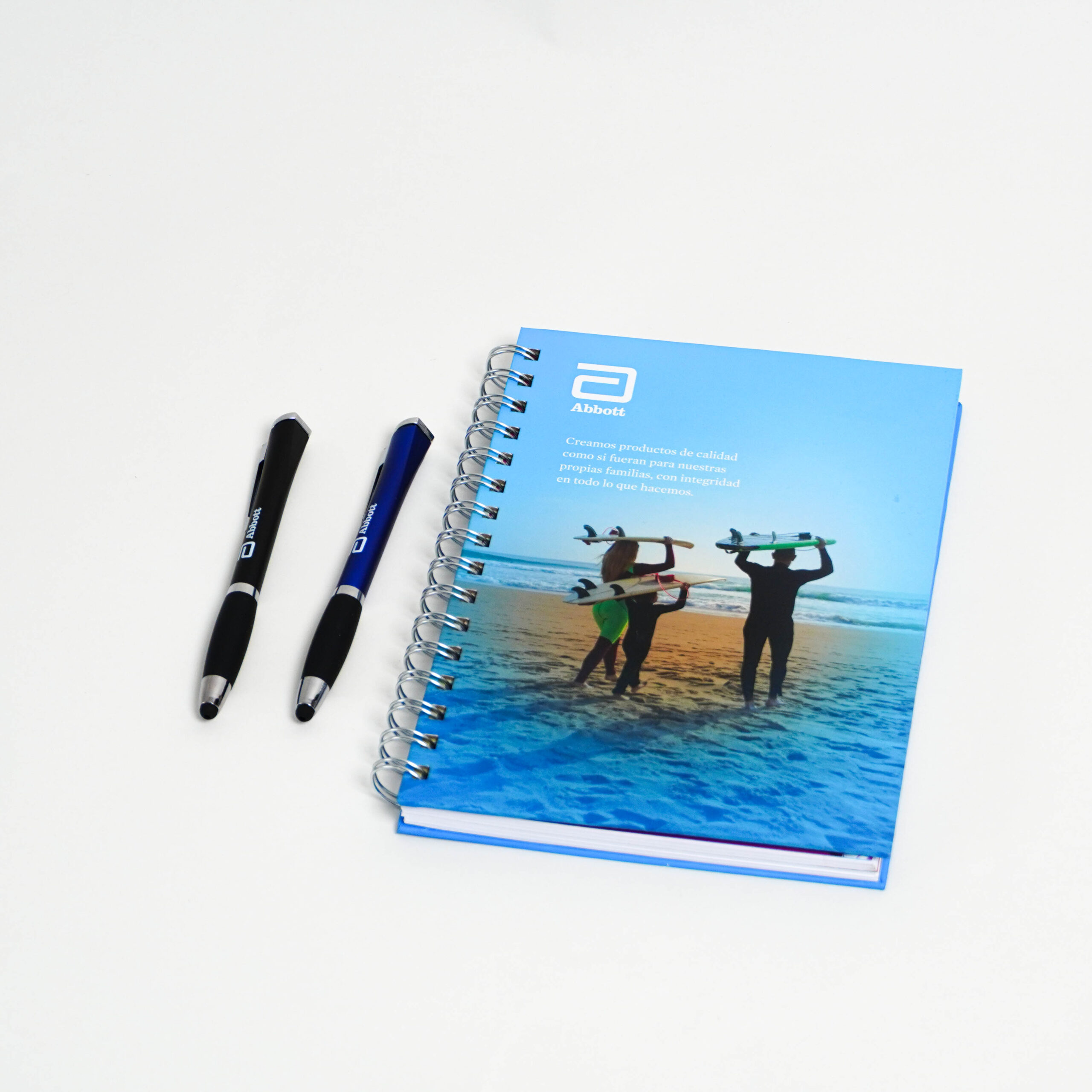 01 cuaderno tamaño A5 color celeste con tapa dura logo Abbott.