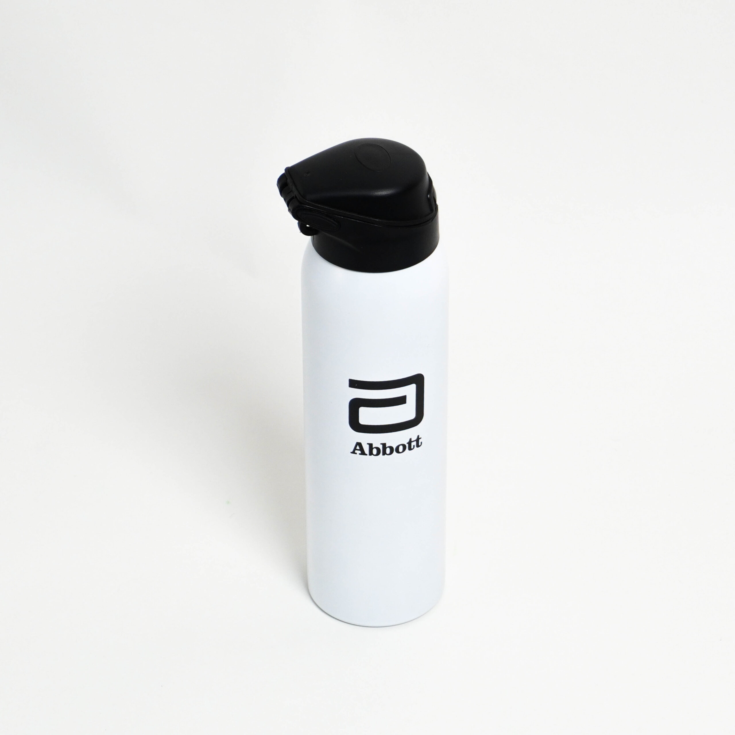 01 tomatodo metálico color blanco con tapa color negro logo Abbott.