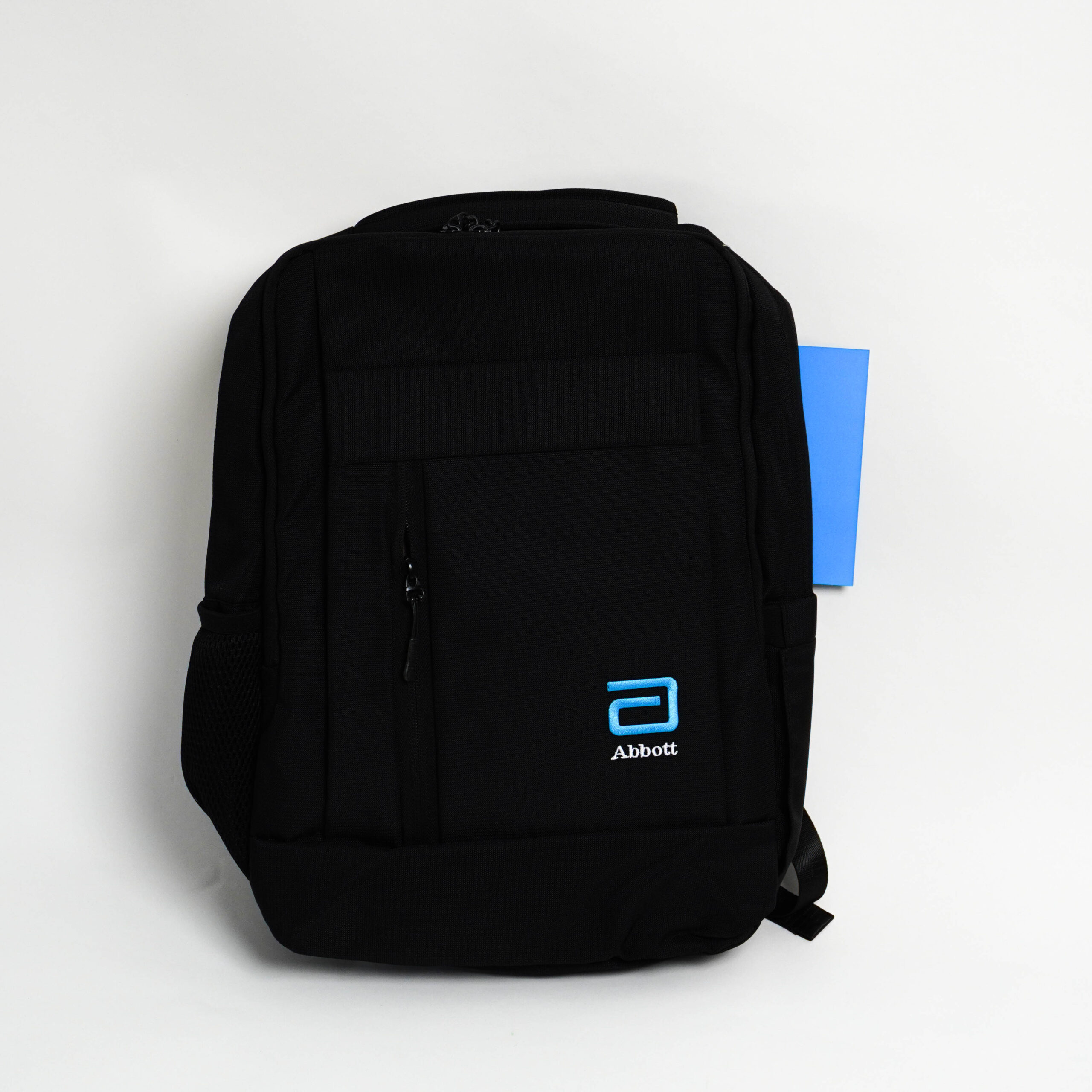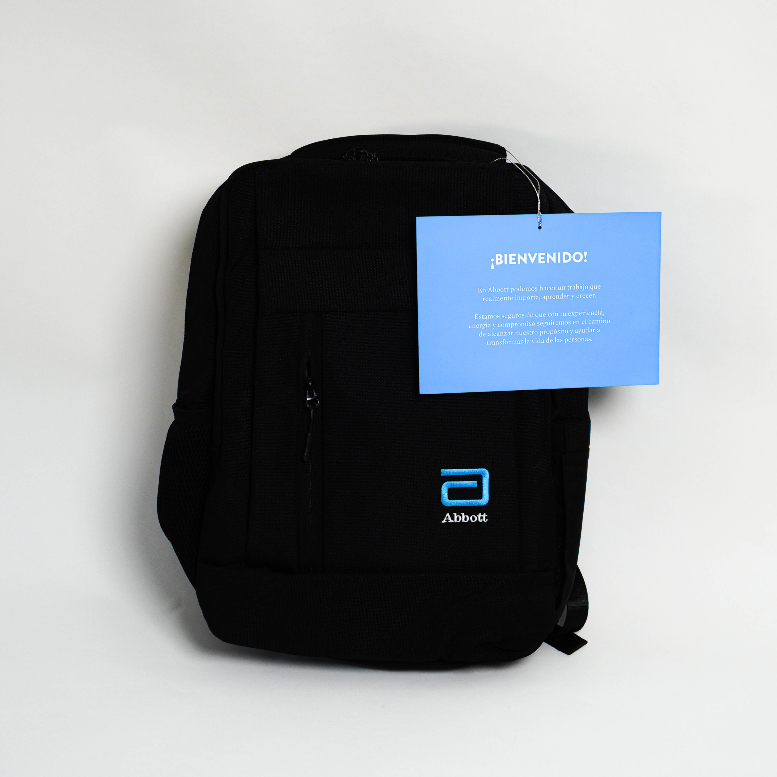01 mochila de nylon color negro logo Abbott.