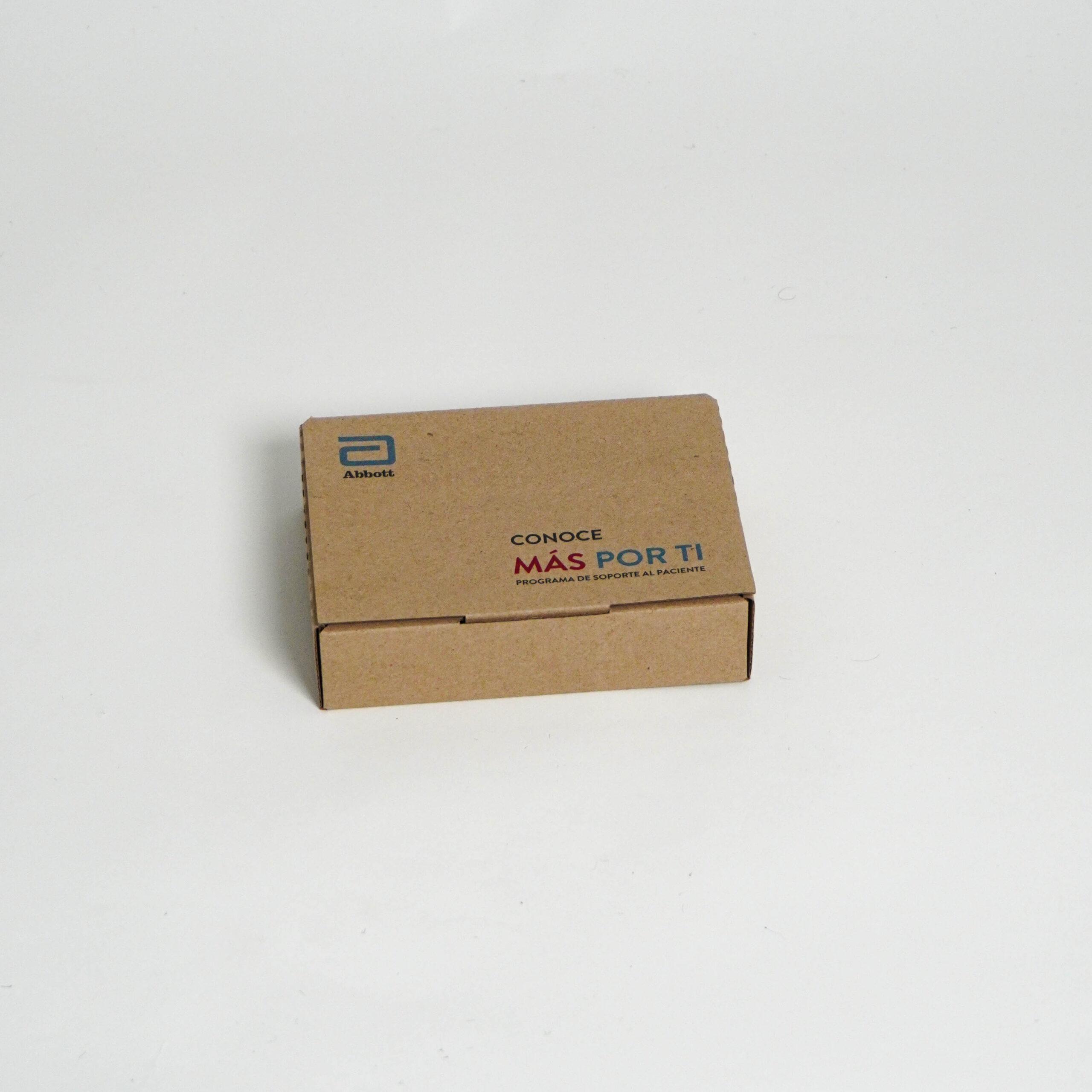 - 01 caja corrugada pequeña con logo Abbott Conoce Más Por Ti, conteniendo: