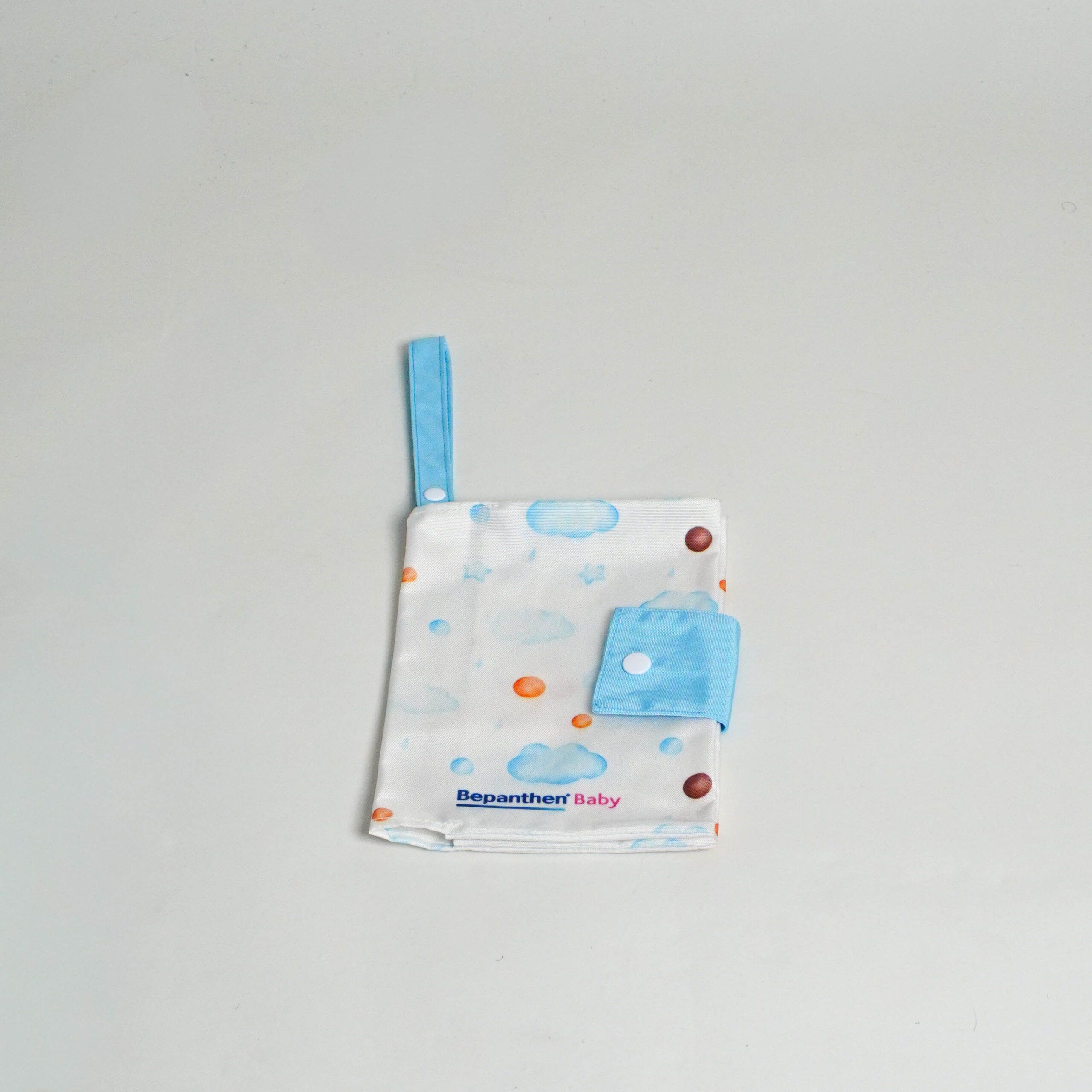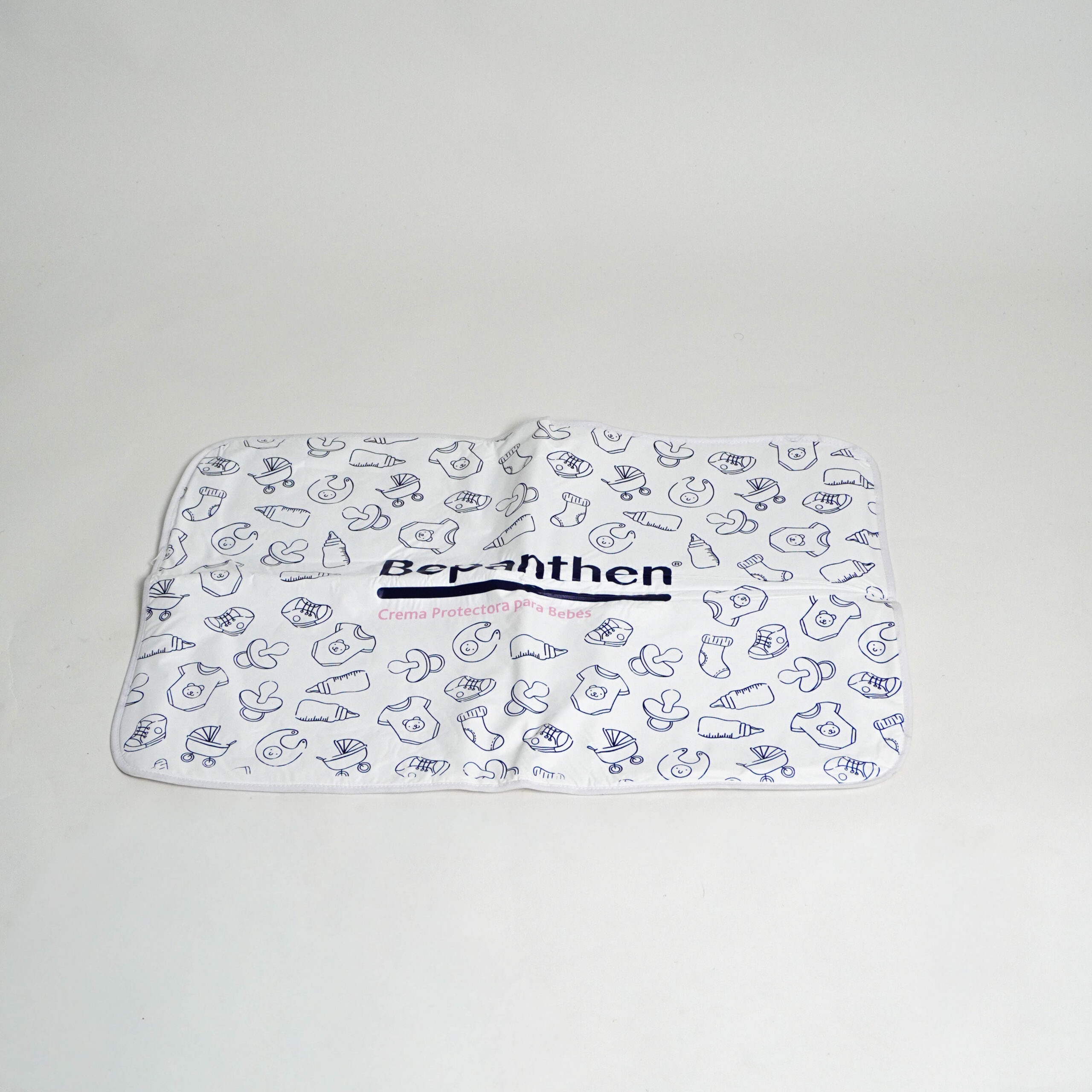 - 01 porta pañales sublimado color blanco con logo Bepanthen Baby.