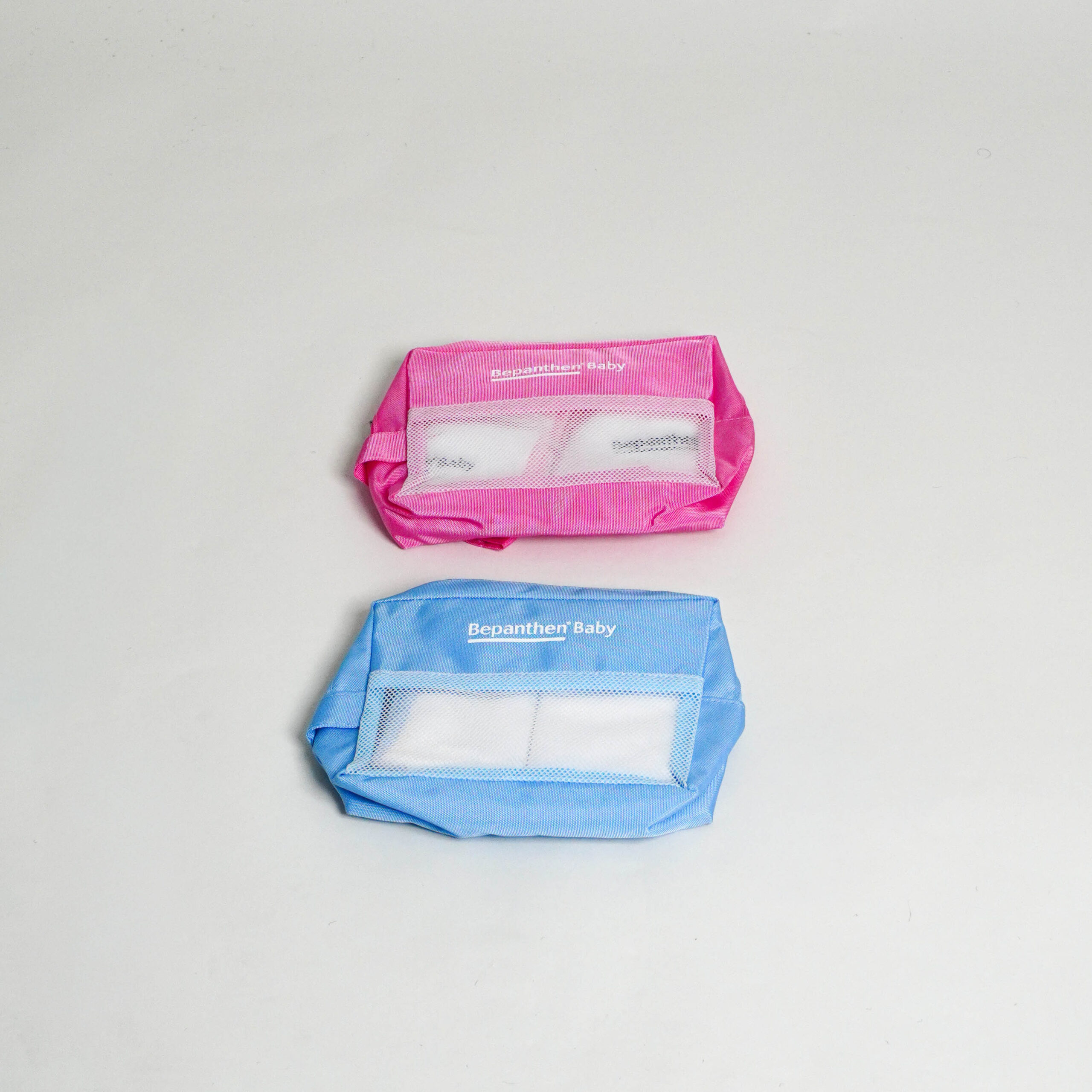 - 01 neceser color rosado con 02 toallas color blanco con logo Bepanthen Baby.