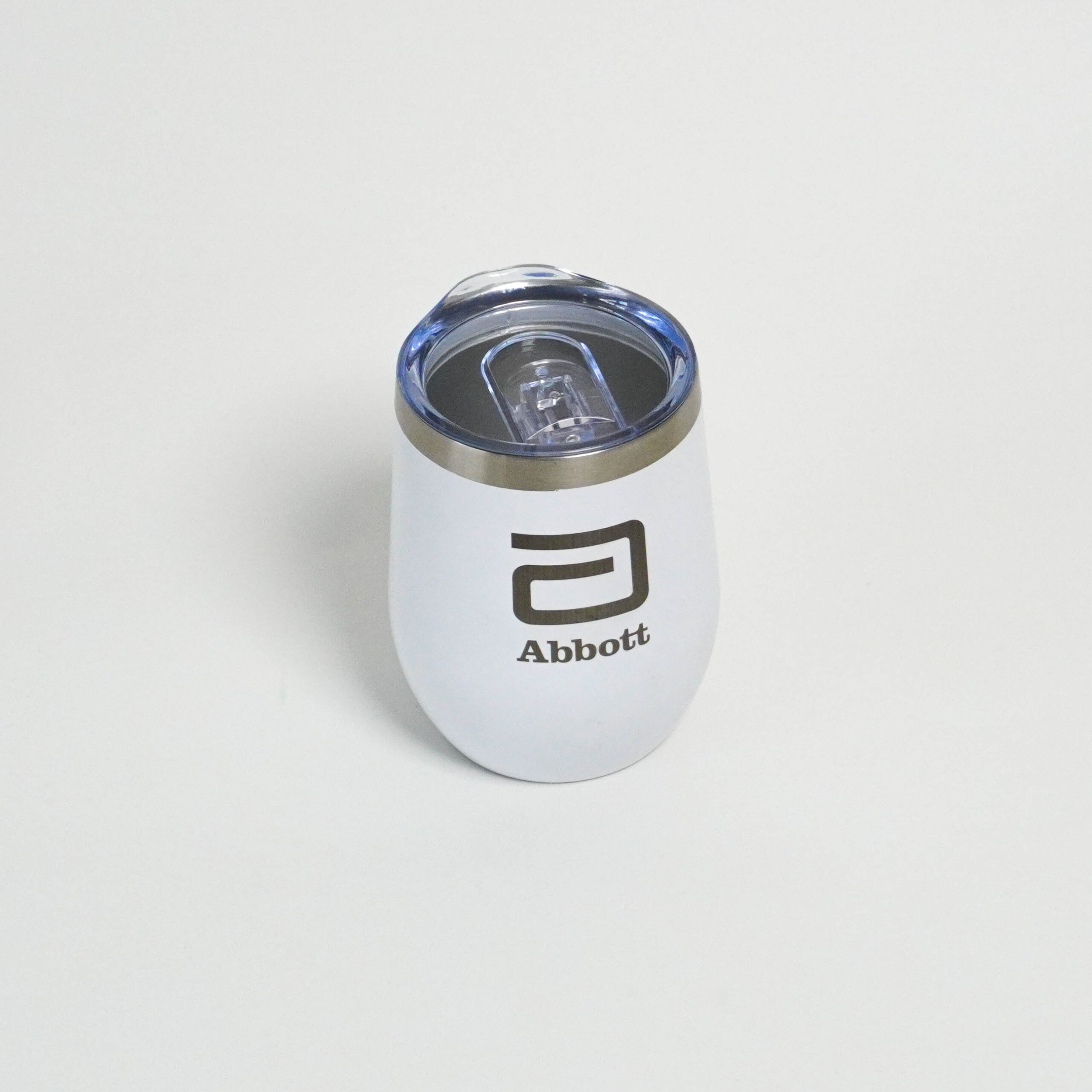 - 01 jarro mug metálico color blanco con logo Abbott en grabado láser.