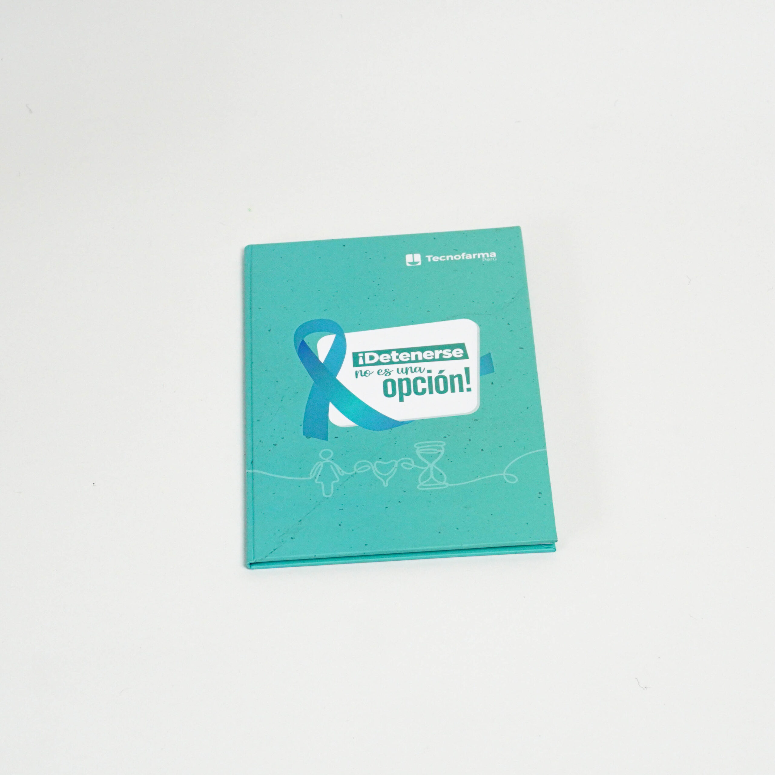 - 01 cuaderno delgado tamaño A5 empastado color verde logo “¡Detenerse no es una opción! – Tecnofarma.