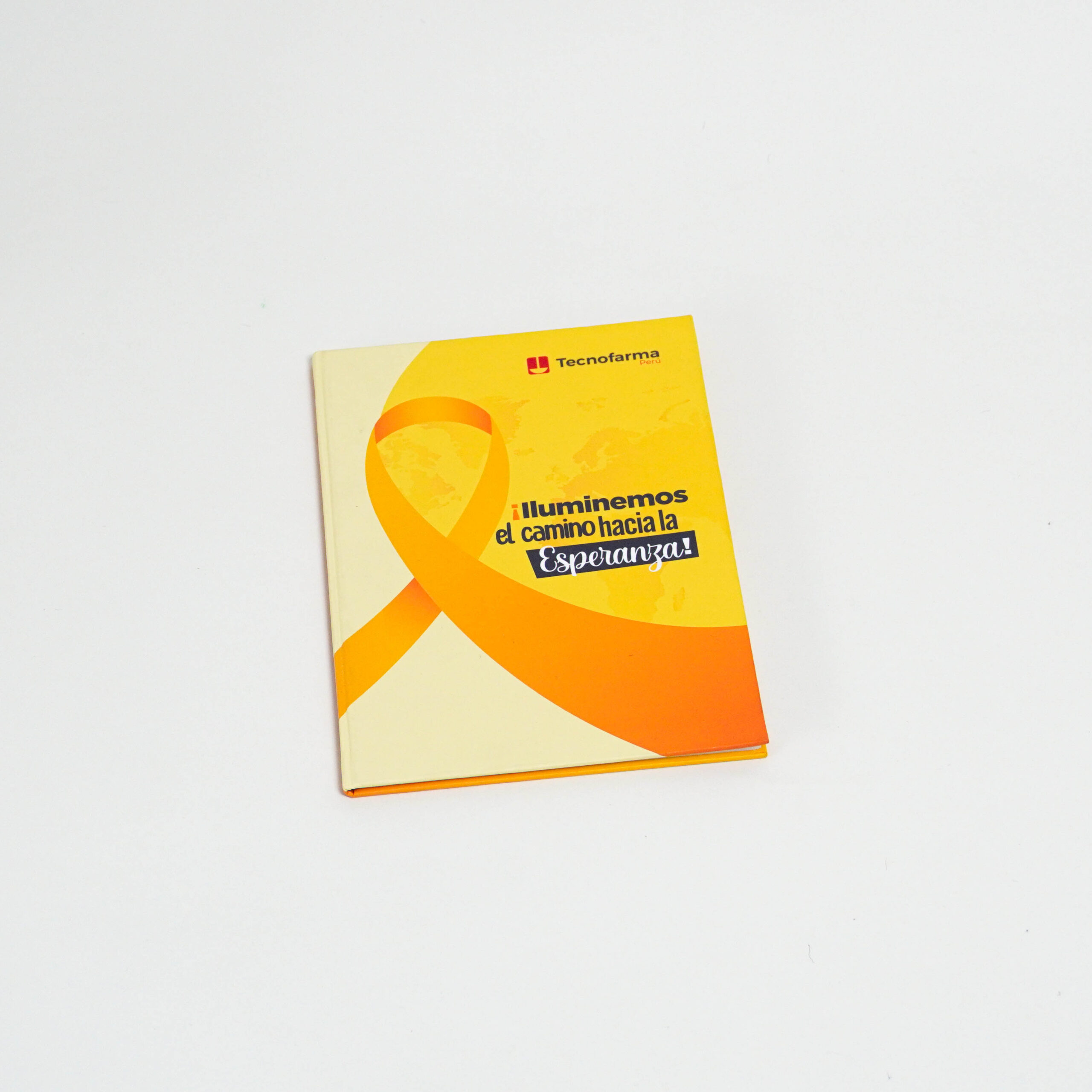 - 01 cuaderno delgado tamaño A5 empastado color amarillo logo “¡Iluminemos el camino hacia la esperanza! – Tecnofarma.